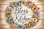 Bless This Kitchen Butterflies 11x8in Tempered Glass Cutting Board