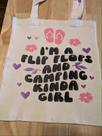 I'm a flip flop and camping kinda girl 12x 14" tote bag.