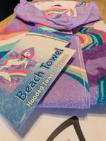 Get ready for a day at the beach with this Unicorn tote and matching hooded beach towel.